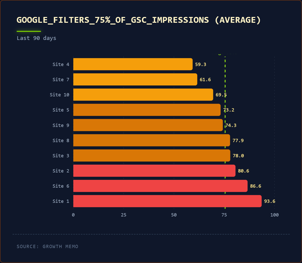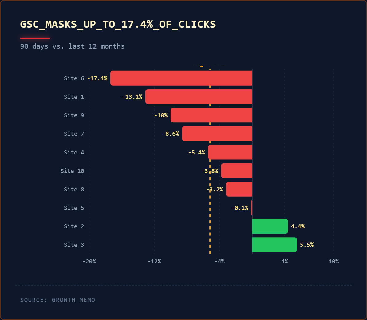 A rossz hír: az alapvető probléma továbbra is fennáll. Még ezekkel a fejlesztésekkel is katasztrofálisan magas marad a 38%-os kattintásszűrés és 75%-os megjelenítési szűrés. Az 5%-os javulás nem teszi megbízhatóvá az egyetlen forrásból származó GSC-döntéseket, ha a megjelenítési adatok háromnegyede hiányzik.