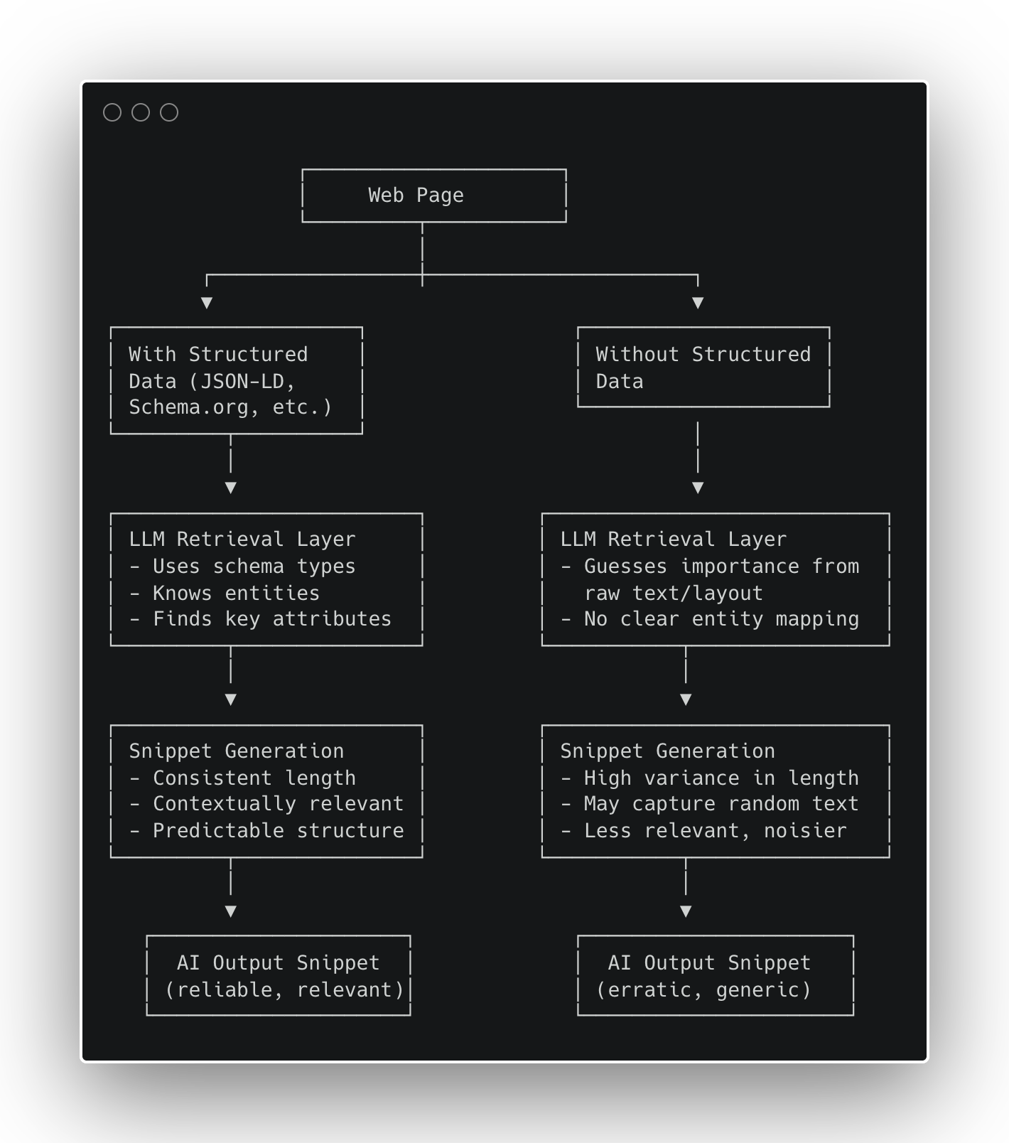 Értelmezés: A strukturált adatok nem növelik a hosszát; Csökkenti a bizonytalanságot. A modellek alapértelmezetten a gépelt, biztonságos tényekhez, ahelyett, hogy az önkényes HTML -ből kitalálnák.