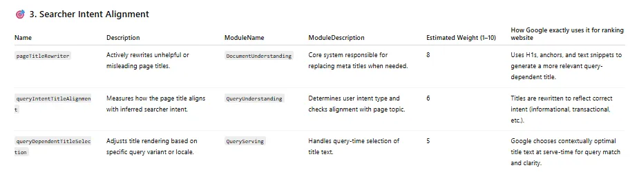 Az oldalcímek pedig lekérdezési szinten átírásra kerülnek. A queryIntentTitleAlignment méri, hogy az oldal címe hogyan illeszkedik a kereső szándékához. Ha ez megtörtént, a rendszer felülvizsgálja az oldaligazítást és a lekérdezési szándékot, hogy megbizonyosodjon arról, hogy a cím a legjobban tükrözi az oldalt a lekérdezés szintjén.