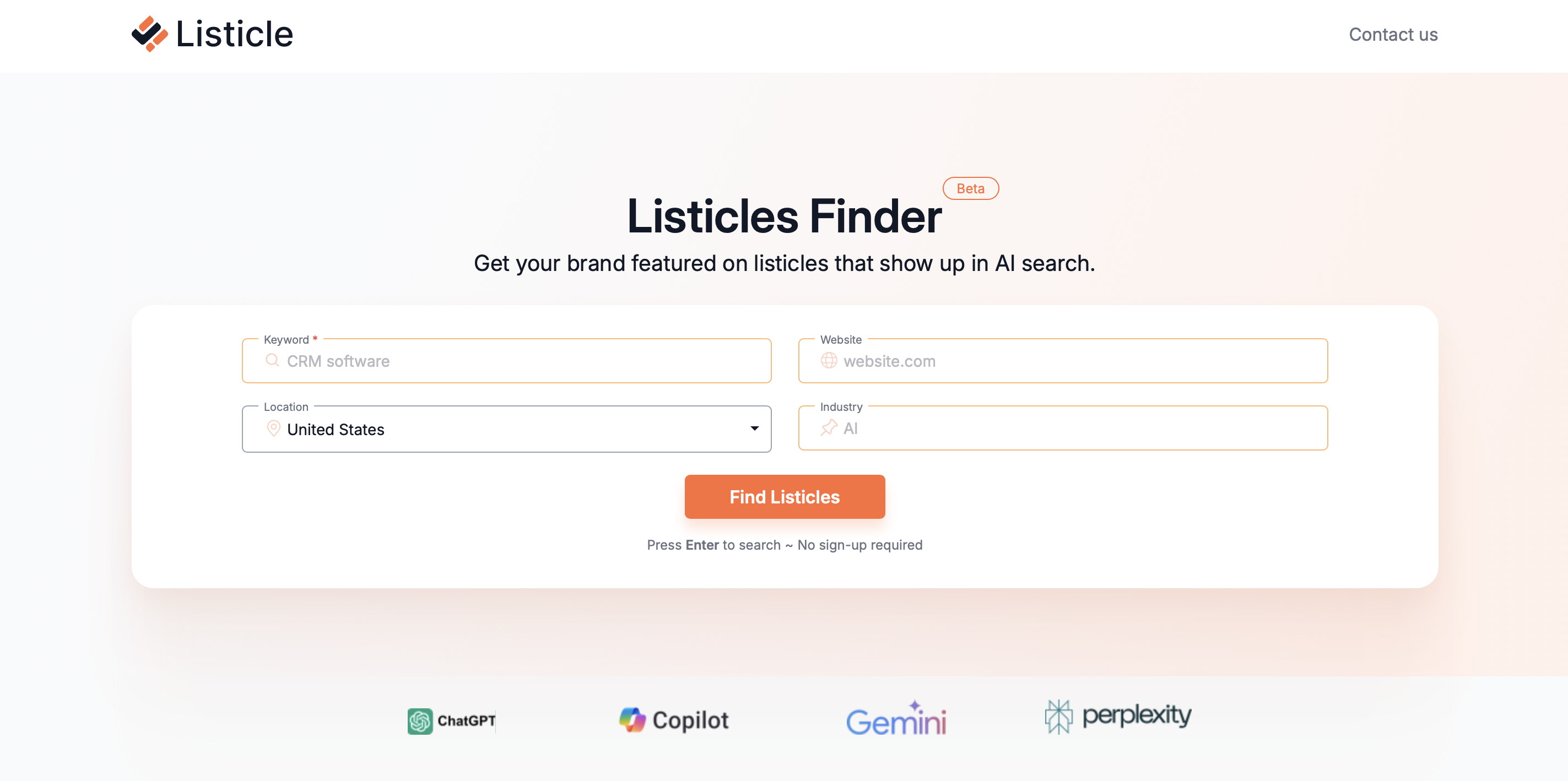 - Tudnak segíteni abban, hogy linket szerezzen a legjobb listákról? Ahrefs adatai azt mutatják, hogy a „Legjobb X” lista bejegyzései uralták a mezőnyt. A válaszokban hivatkozott oldalak 43,8%-át tették ki, és óriásinak tűnt a különbség köztük és minden más formátum között. Ingyenes szolgáltatásokkal, például a listicle.com-on megtalálhatja a megfelelő listákat az Ön résében.