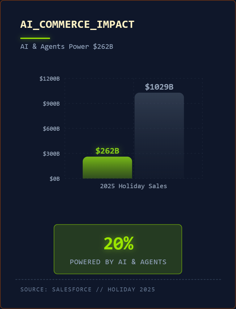 A jel már látható a zajban. A 2025-ös ünnepi szezonban a mesterséges intelligencia ügynökei adták a kiskereskedelmi eladások 20%-át. A laza definíciókat megengedve is elérkezett az ügynökkereskedelem korszaka.